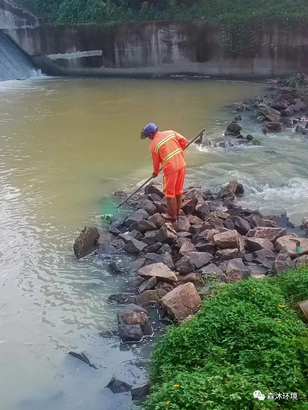 (我司員工在進(jìn)行河道保潔工作) (我司員工在進(jìn)行綠化修剪工作)