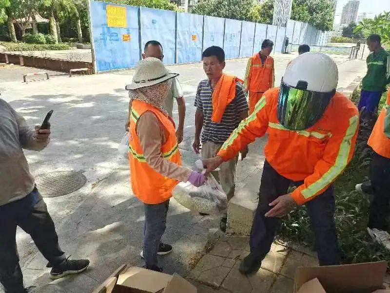 炎炎夏日送清涼,滴滴關(guān)懷沁心田。連日來(lái),驕陽(yáng)似火,熱浪襲人,持續(xù)的高溫天氣給奮戰(zhàn)在一線的環(huán)衛(wèi)工人們帶來(lái)了極大的挑戰(zhàn)。我司領(lǐng)導(dǎo)高度重視員工的夏季防暑降溫工作,于近日積極組織開展“夏送清涼”慰問活動(dòng),由我司行政人事部代表公司為奮戰(zhàn)在一線、默默奉獻(xiàn)的環(huán)衛(wèi)工人們送上綠豆、西米、薏米、白糖等防暑降溫食材,并叮囑他們做好防暑降溫工作,合理安排時(shí)間,錯(cuò)開高溫酷暑時(shí)間段,防止高溫中暑。