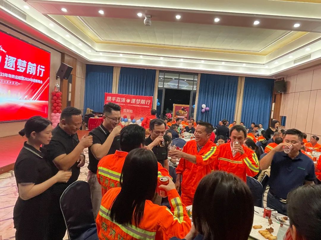 凱歌而行,不以山海為遠;乘勢而上,不以日月為限;于高山之巔,方見大河奔涌;于群峰之上,更覺長風浩蕩。1月26日,以“攜手森沐,逐夢前行”為主題的三亞森沐環(huán)境產業(yè)服務有限公司2023年年終總結暨2024年迎新晚會圓滿舉行。來自各項目部、辦公室的同事齊聚一堂,共同回顧2023年的工作點滴,共同展望未來的美好前景。