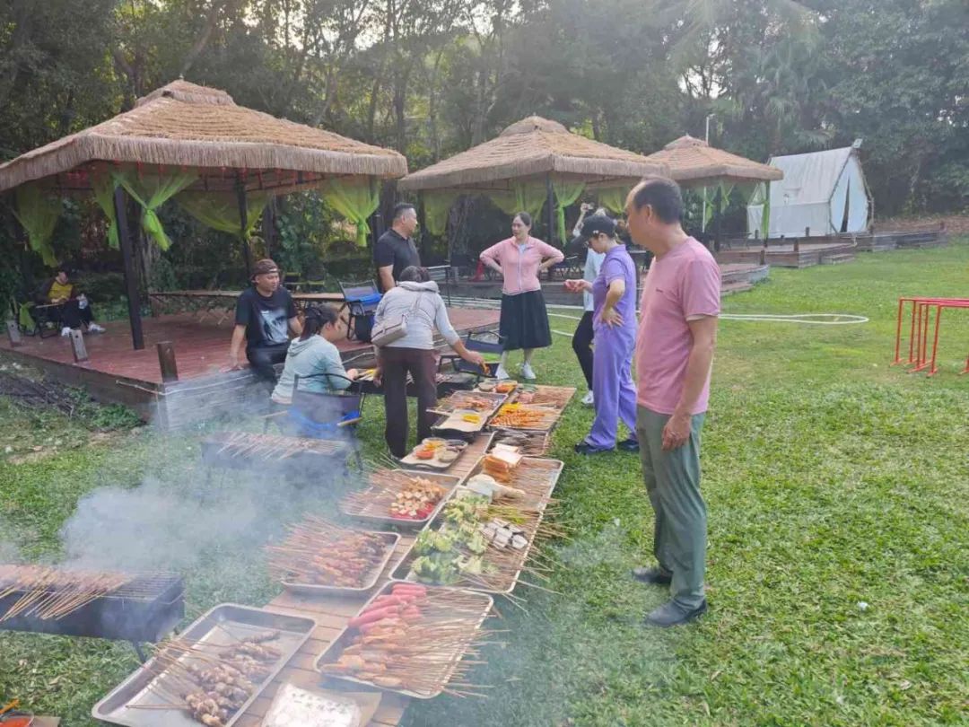 隨著夜幕的降臨,美味的晚餐時(shí)刻正式拉開帷幕。公司精心準(zhǔn)備了豐盛的BBQ露營(yíng)燒烤和香氣四溢的烤全羊,讓員工們大飽口福。