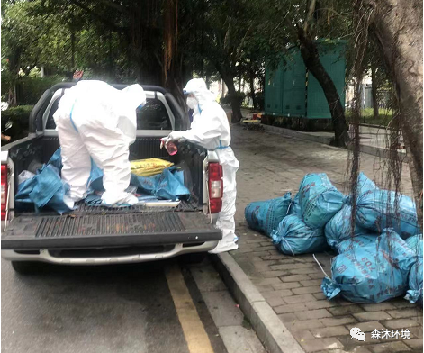 (我司員工在進(jìn)行醫(yī)療廢棄物清理運(yùn)送工作)